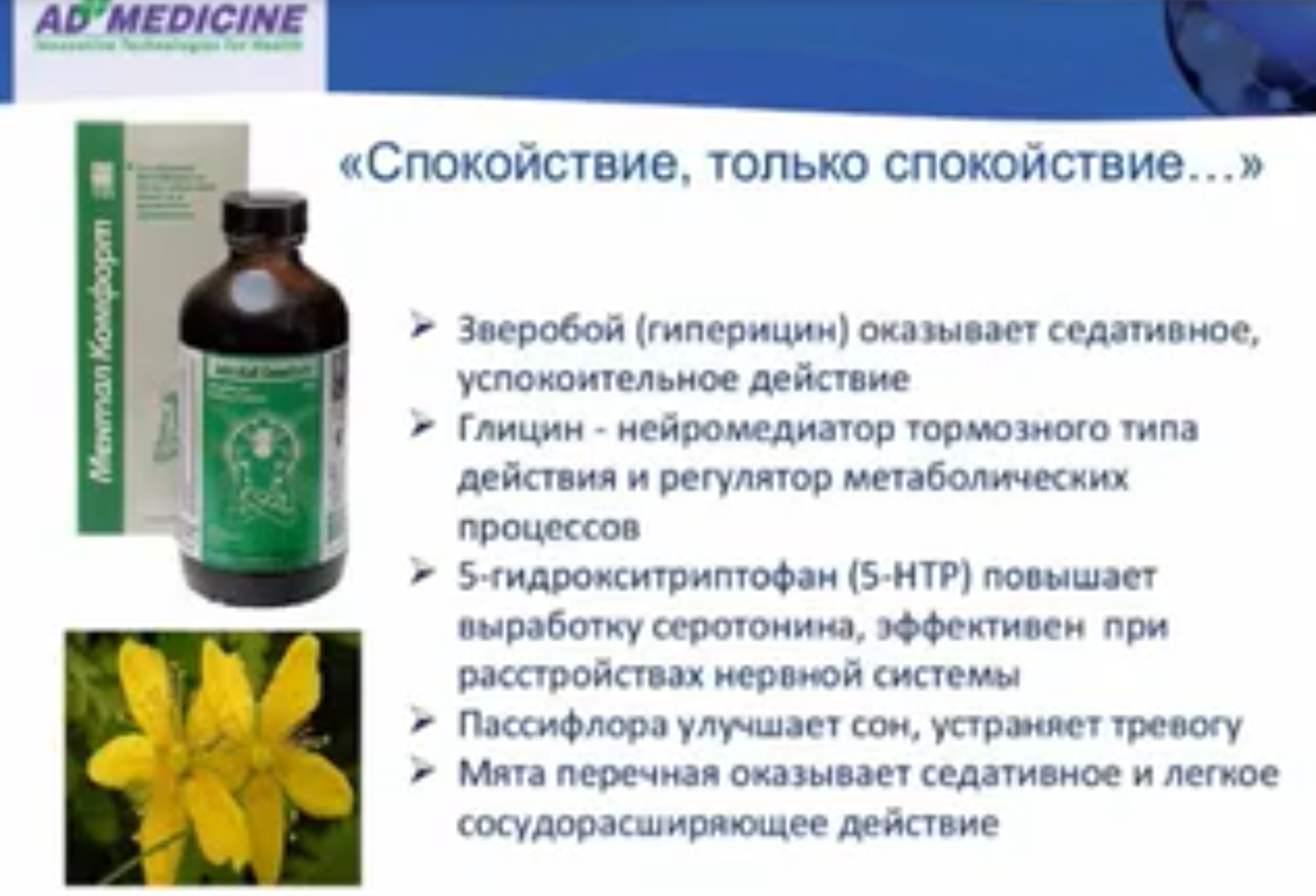 • Сбалансированный комплекс зверобоя и боярышника, глицина и витаминов группы В для нормализации сна и повышения эффективности терапии пациентов с психосоматическими заболеваниями.