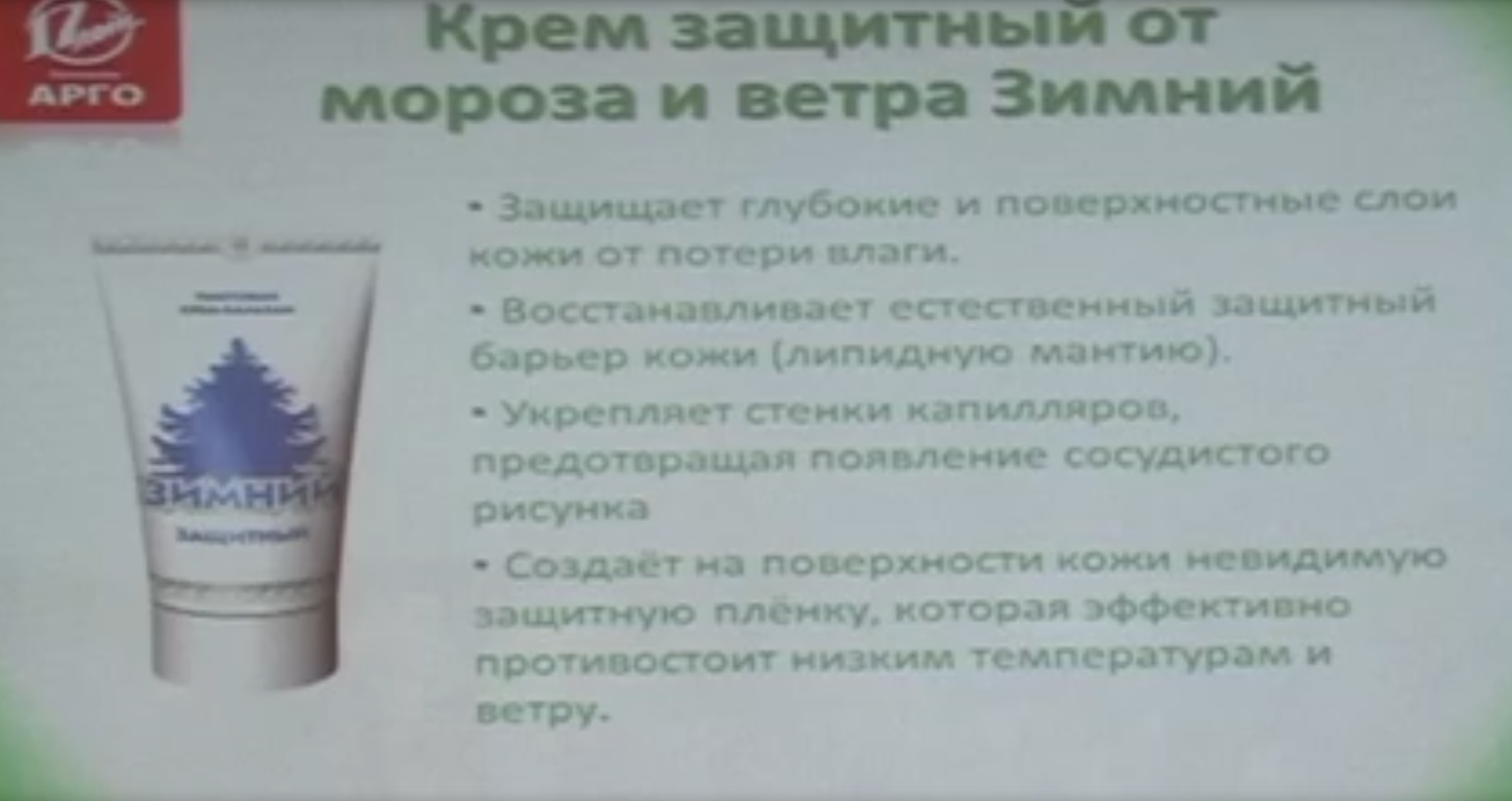 • создаёт на поверхности кожи невидимую защитную плёнку, которая эффективно противостоит низким температурам и ветру;